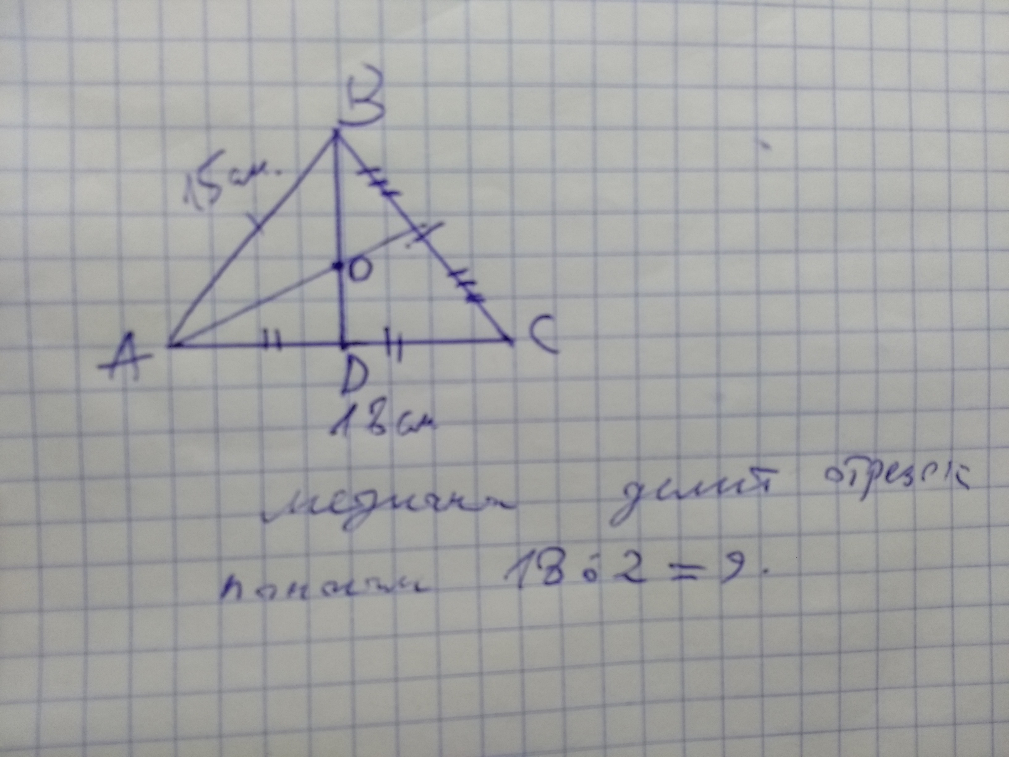 AB=15, AC=18 Найдите AD где O точка пересечения медиан