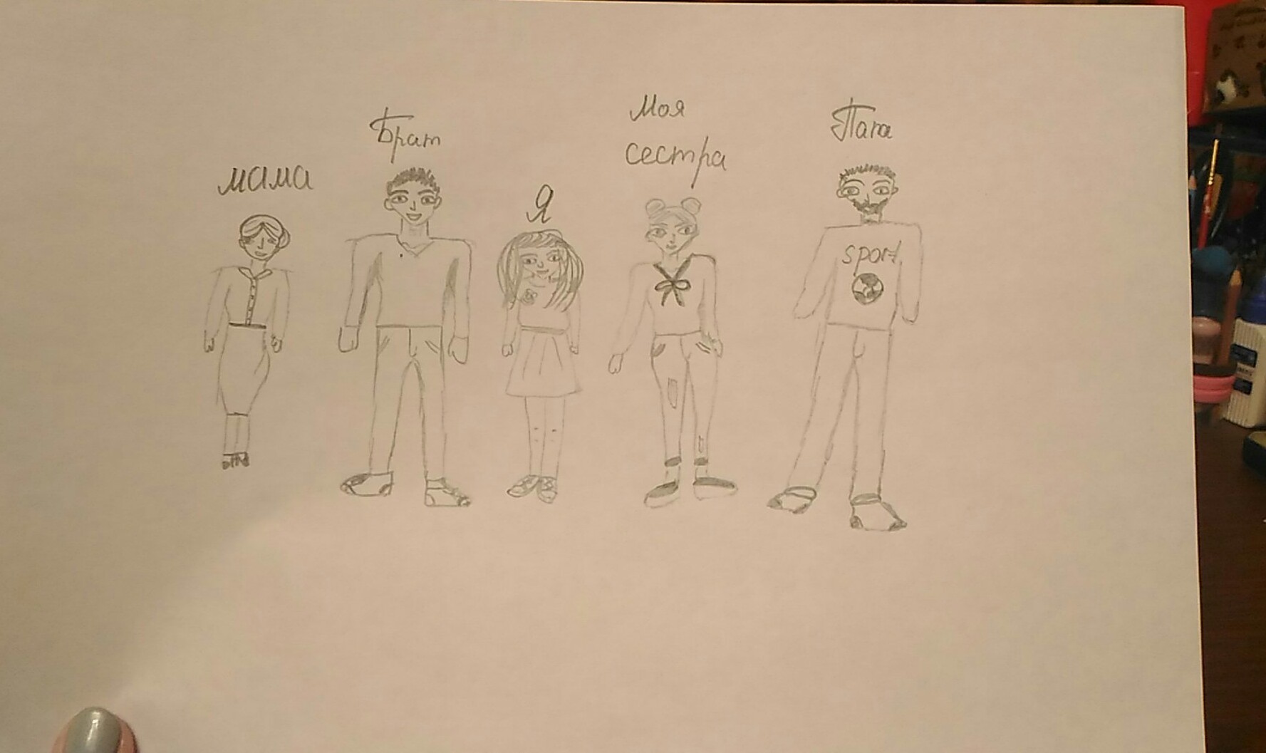 Нарисуйте рисунок на тему "моя семья" на листе и отправьте фото.Пж срочно!(Если что в моей семье Я(девочка),Брат,Сестра,Мама,Папа)