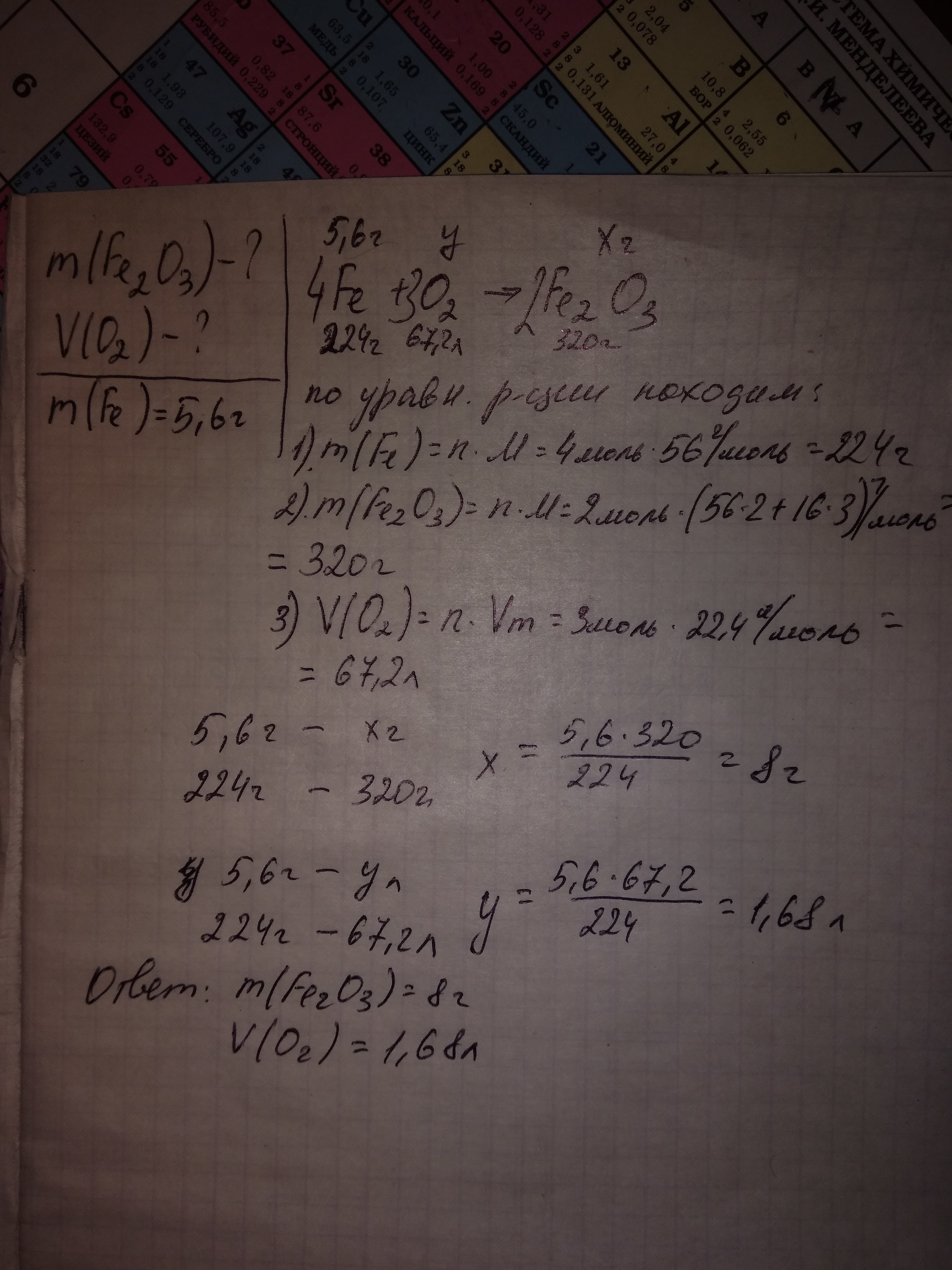 какова масса оксида при взаимодействии с кислородом 5,6г железа (lll)? Какой объём кислорода израсходован?