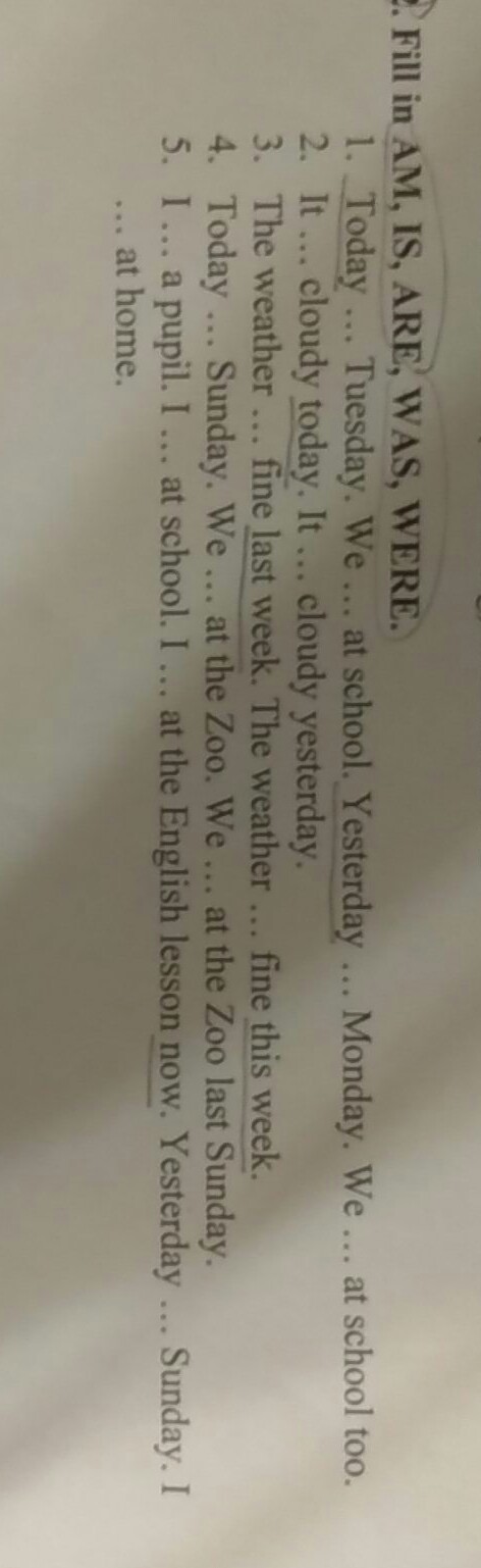 1. Today is Tuesday. We were at school. Yesterday was Monday. We were at school too.