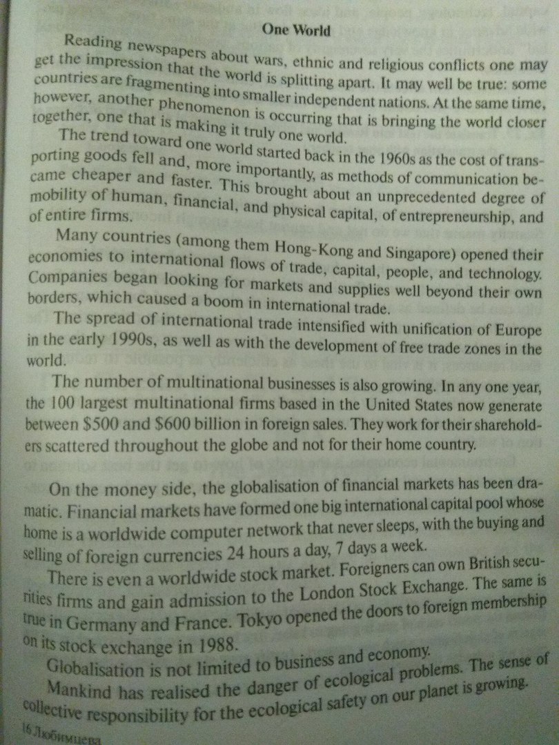 Although there are still many problems in the world, these problems have little effect on the speed of globalization. With the development of communication technology, international trade has been expanding ever so fast since the 1960s. Moreover, some global challenges, like the ecological safety of our planet, can only be solved when every country works in partnership with the other countries.