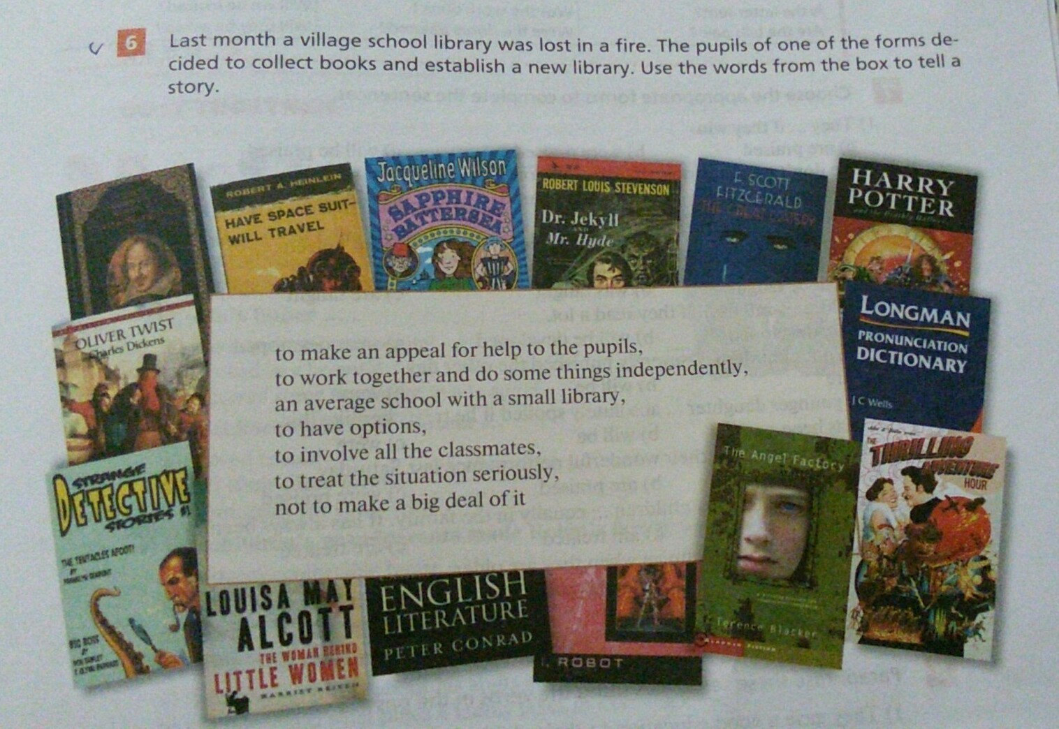 В прошлом месяце школьная библиотека деревни была потеряна в результате пожара. Ученики одной из форм решают собирать книги и создавать новую библиотеку, использовать слова из окна, чтобы рассказывать историю, чтобы обратиться за помощью к ученикам, работать вместе и делать что-то самостоятельно, в среднем школа с небольшой библиотекой. иметь варианты, привлекать всех одноклассников, серьезно относиться к ситуации, а не делать из нее многое