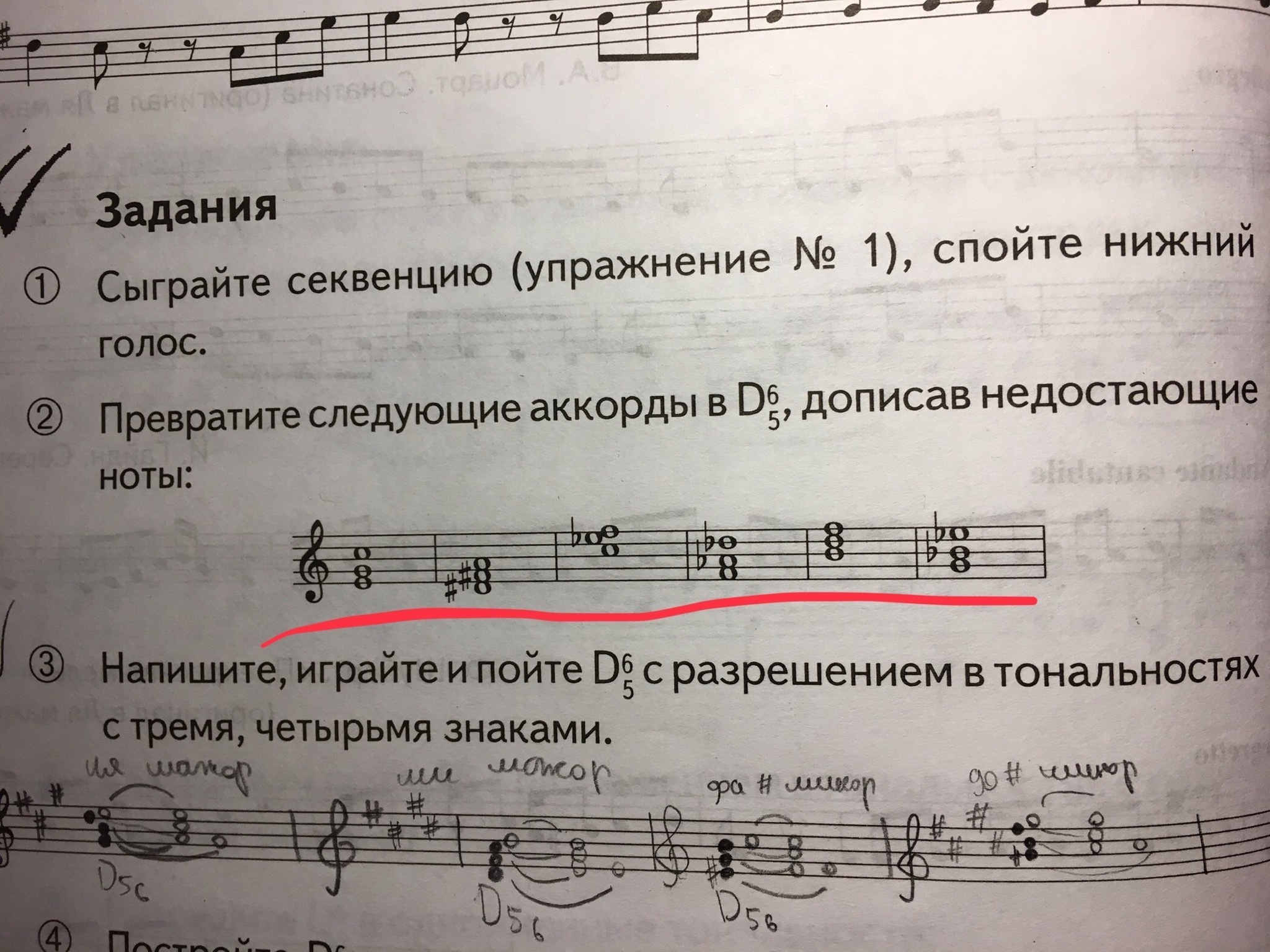 «Превратите следующие аккорды в D56,дописав недостающие ноты»