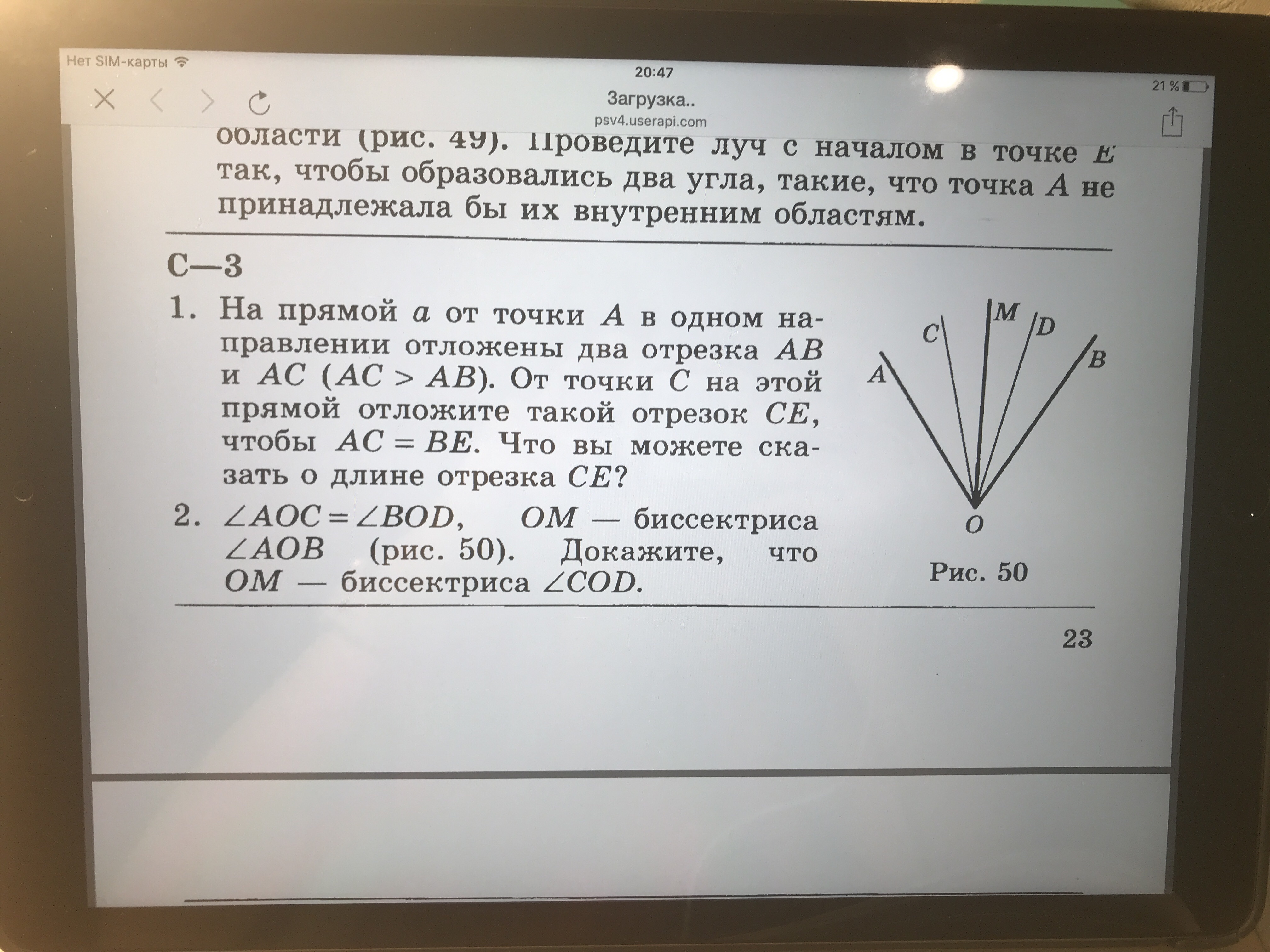 ∠MOC= ∠ MOD , т.е. OM биссектриса ∠ COD.