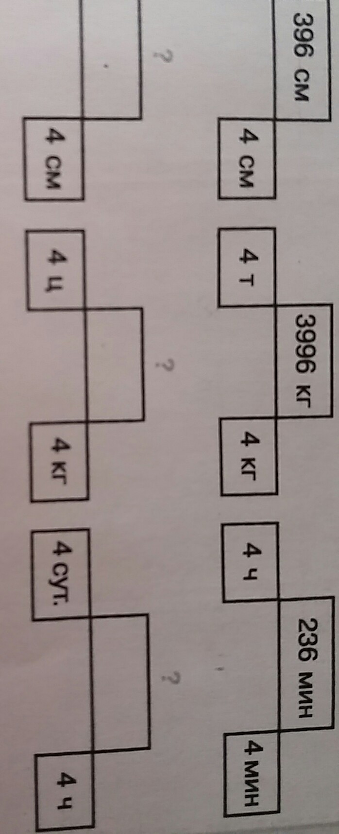 Догадайся по какому правилу записана тройка величин,вставь пропущенные величины сохраняя правило.