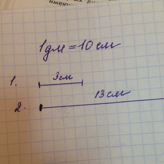 Начертит 2 отрезка один отрезок длиной 3 см,а второй длинен первого на 1 дм. С решением пожалуйста