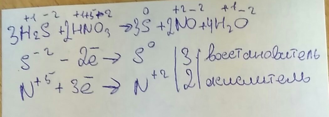 для данной реакции подберите коэффициенты методом электронного баланса.. укажите окислитель и восстановитель H2S+HNO3=S+NO+H2O