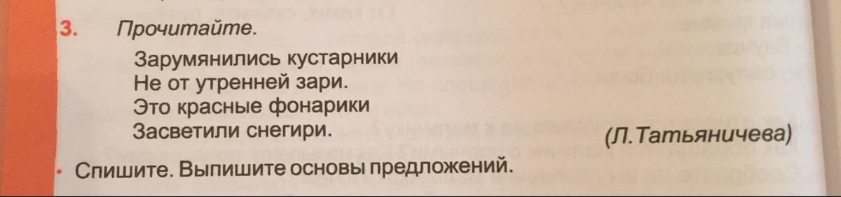 Зарумянились кустарники основа предложения это грамматическая основа кустарники что сделали? зарумянились засветили Снегири что сделали? засветили
