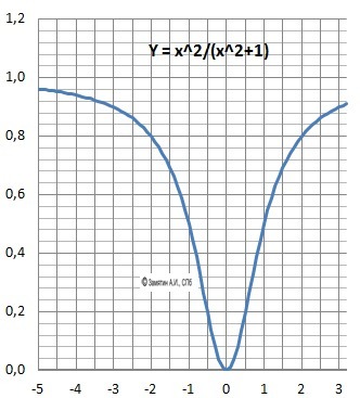 Построить график функции y= x^2/1+x^2, Завтра сдавать, а я не решила