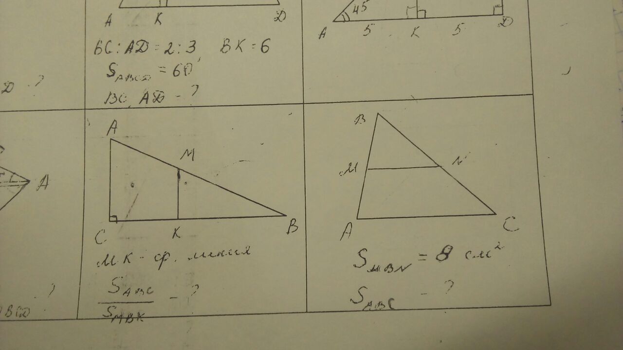 2)S(ABC)=4*S(MBN)=4*8=32 см²