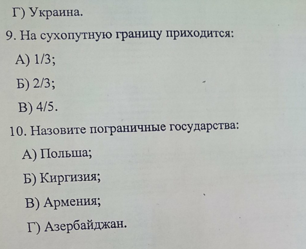 На сухопутную границу приходится:1.В) 4/5