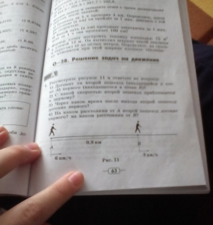 2.6км/ч. У пешехода 1 скорость на 3км/ч больше. 6-3=3(км/ч)