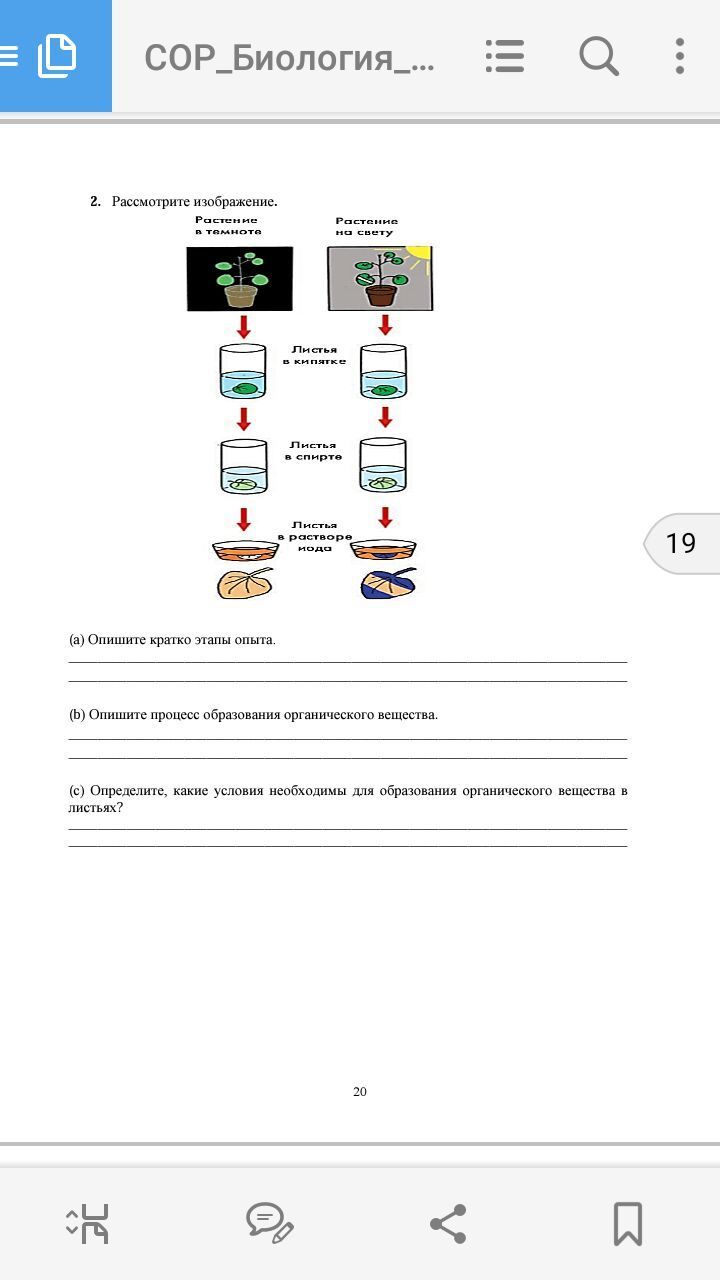 Как мы знаем крахмал синеет от йода, слева растение было не на свету и камала не образовалось. Процесс сверху. Если подробнее: углекислый газ + солнечный свет + вода = кислород + глюкоза. (Глюкоза может превращаться в крахмал если что).