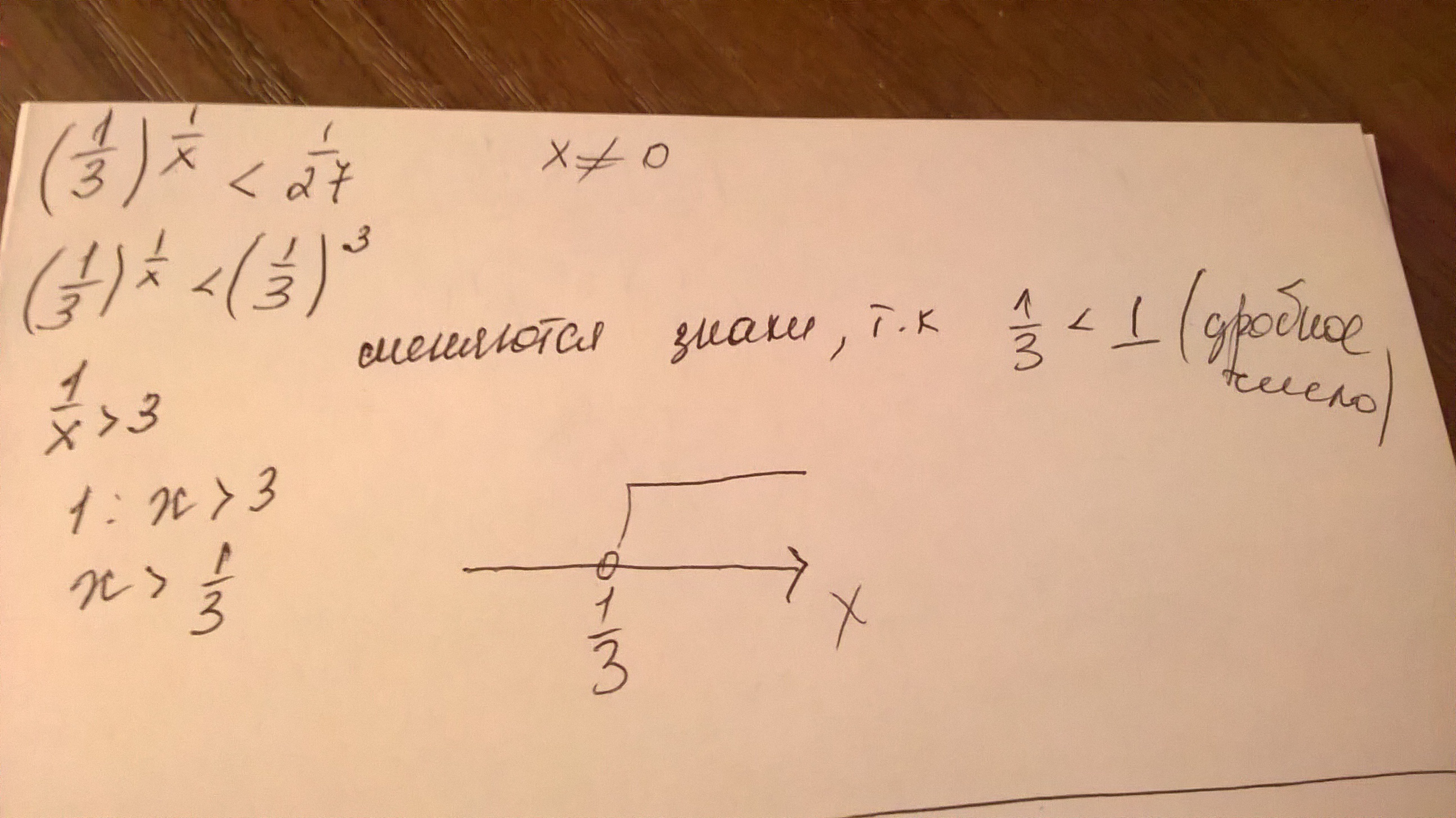 Тут я не помню к сожалению,либо x>=1/3 или x=1/3