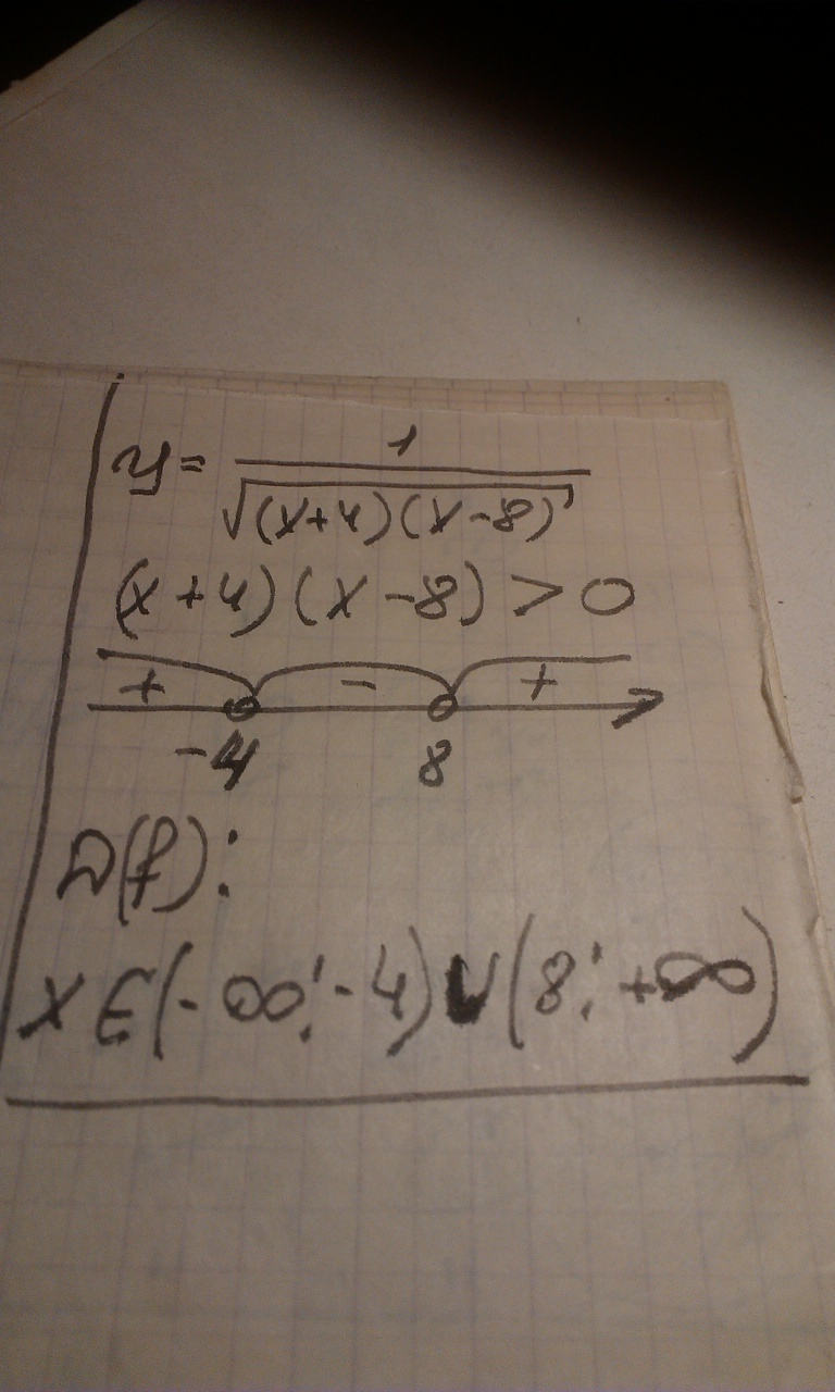 Область определения (-беск;-4) и (8;+беск)