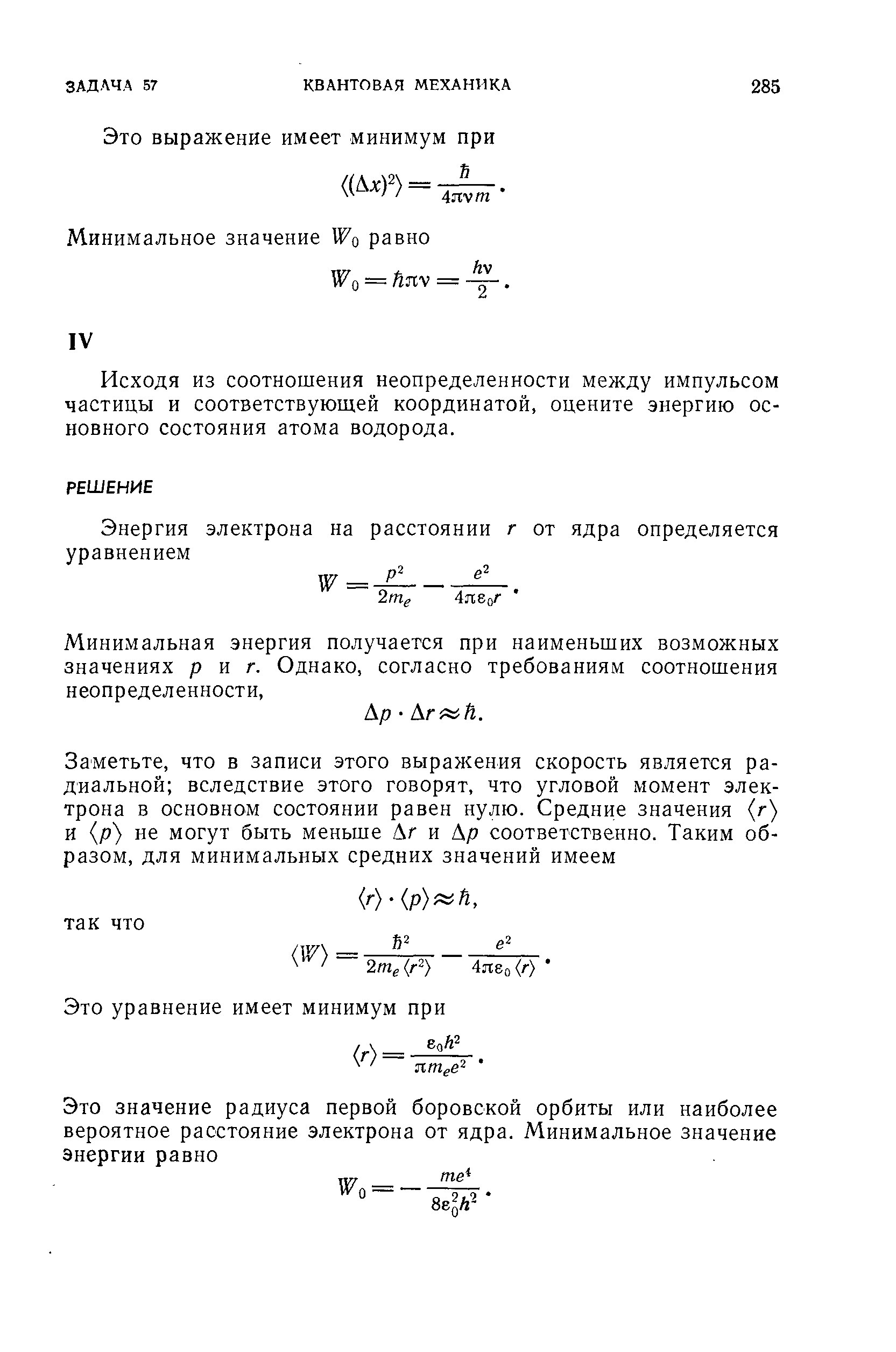 Исходя из соотношения неопределенностей между импульсом частицы и соответствующей координатой, оцените энергию основного состояния атома водорода.