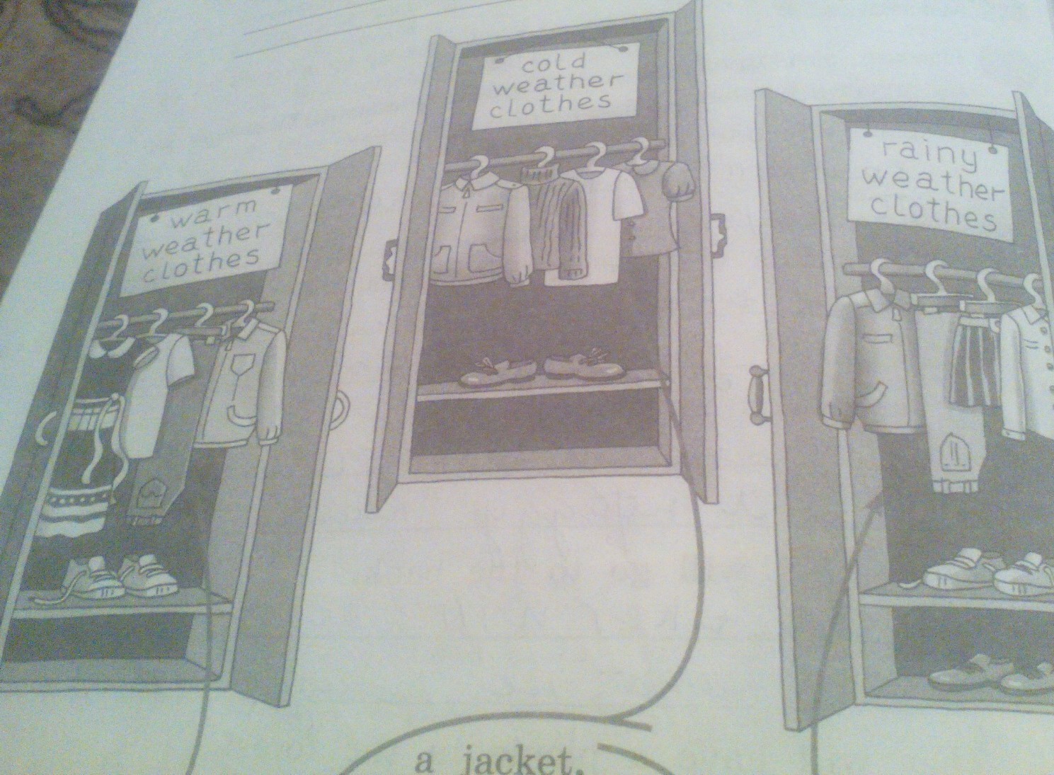 Вещи в этих шкафах кто-то перепутал.Востанави порядок.Напиши какую одежду ты наденешь завтра а какую нет.Образец;l will wear trainers