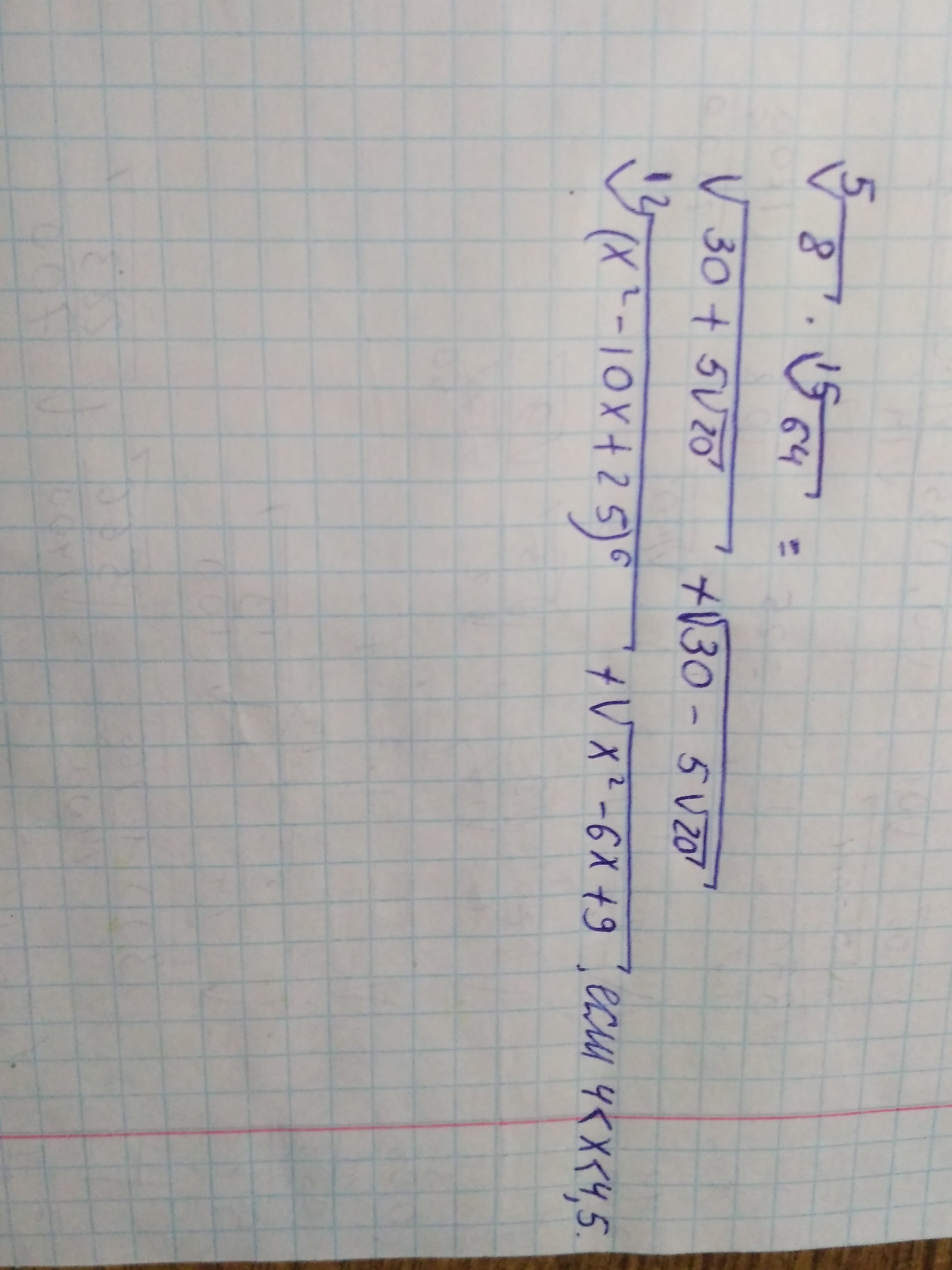 3)Сократим степень первого корня со степенью первого показателя на 6=корень(х²-10х+25) + корень(х²-6х+9)=