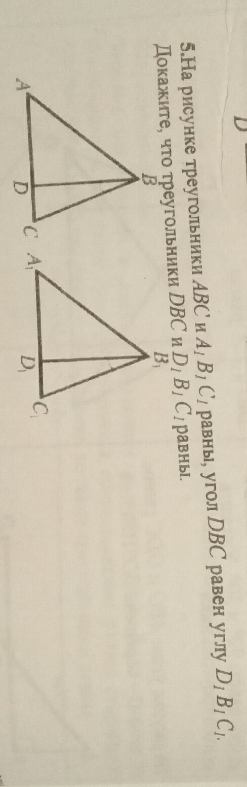 рассмотрим треугольник DBC и D1B1C1 они равны по 2 признаку равенства треугольников (по стороне и 2 прилежащим к ней углам)