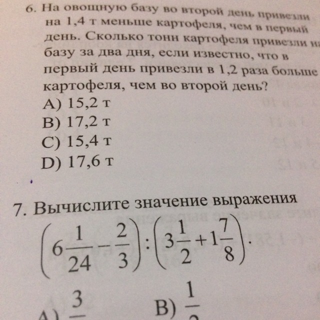 Пусть во второй день привезли х тонн картофеля, тогда в первый день-1,2х т картофеля.