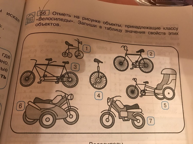 Помогите пожалуйста. Запиши номера объектов принадлежащих классу велосипеды.Запиши в таблицу значения свойств эти объектов .