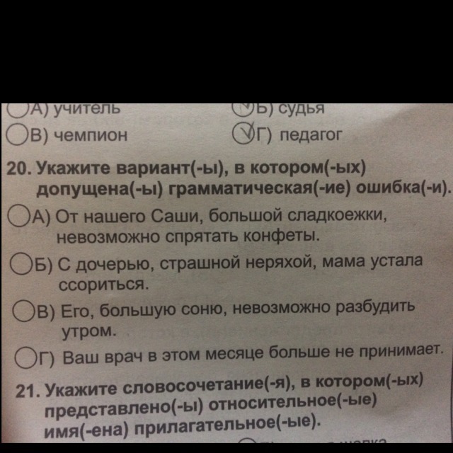 По моему ошибка допущена в варианте А), так как там стоит лишняя запятая