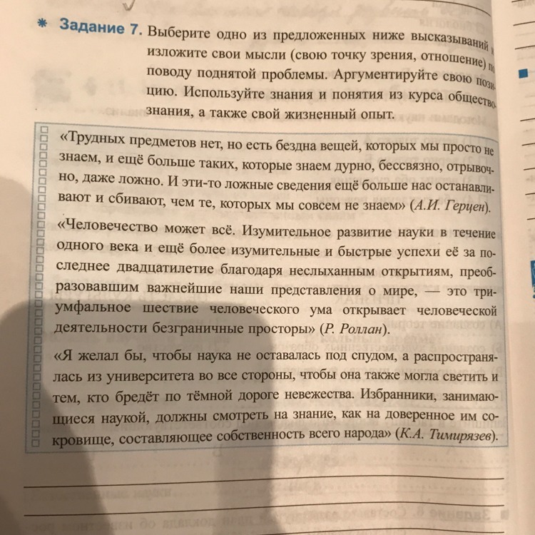 Выберите одно из предложенных ниже высказываний и изложите свои мысли по повода поднятой проблемы . Помогите пожалуйста!!!! Срочно !!! 30 баллов !