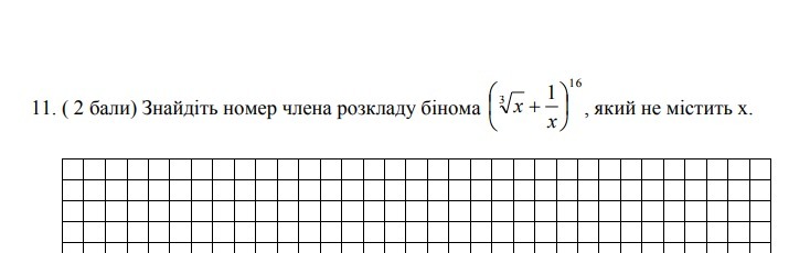 11. Найдите номер члена разложения бинома, который не содержит х.