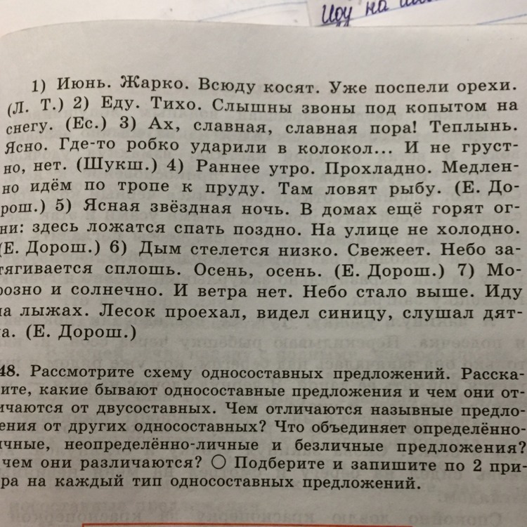 Определите тип односоставных предложений. (Безличное, назывное, определенно-личное или неопределенно-личное)