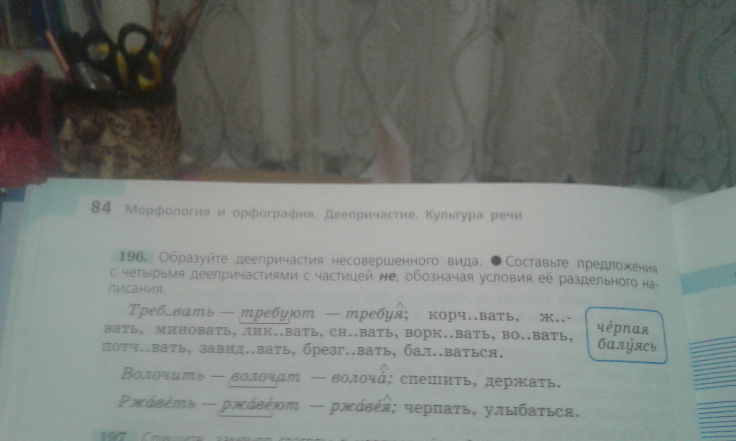 Кочуя, жуя, минуя, ликуя, снуя, воркуя, воюя, потчуя, завидуя, брезгуя, балуясь.