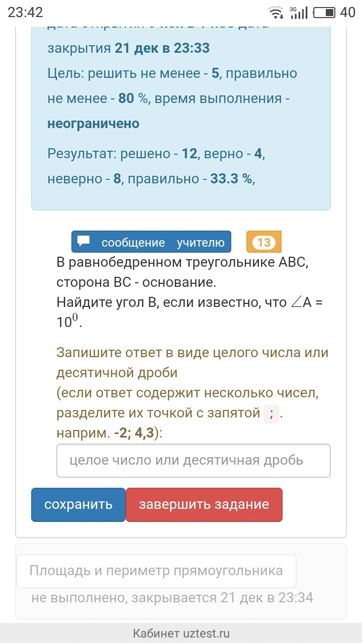 АВС - равнобедренный => угол В = углу С => угол В + угол С = 180 - угол А = 180-10 = 170;