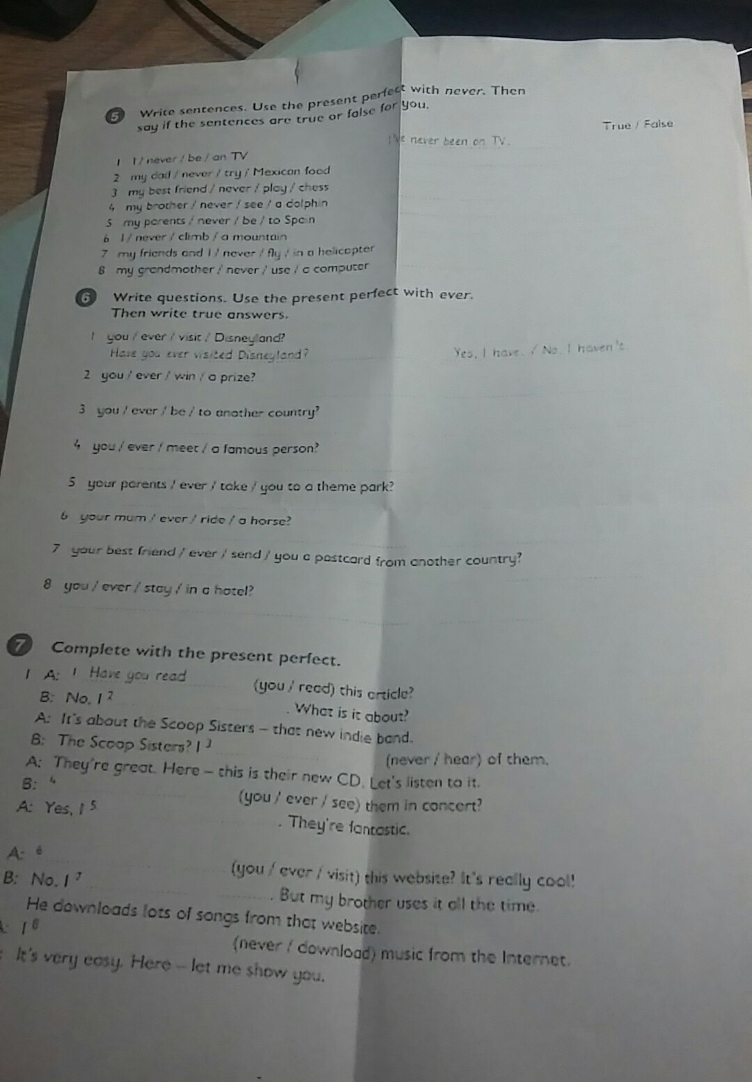 5 Have your parents ever taken you a theme park? No, I haven't.