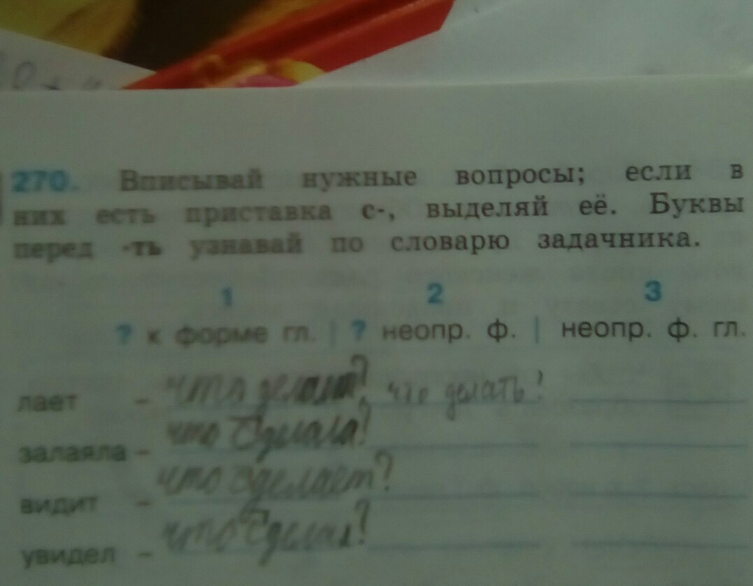 вписывай нужные вопросы;если в них есть приставка с-,выделяй её. Буквы перед -ть узнавай по словарю задачника.