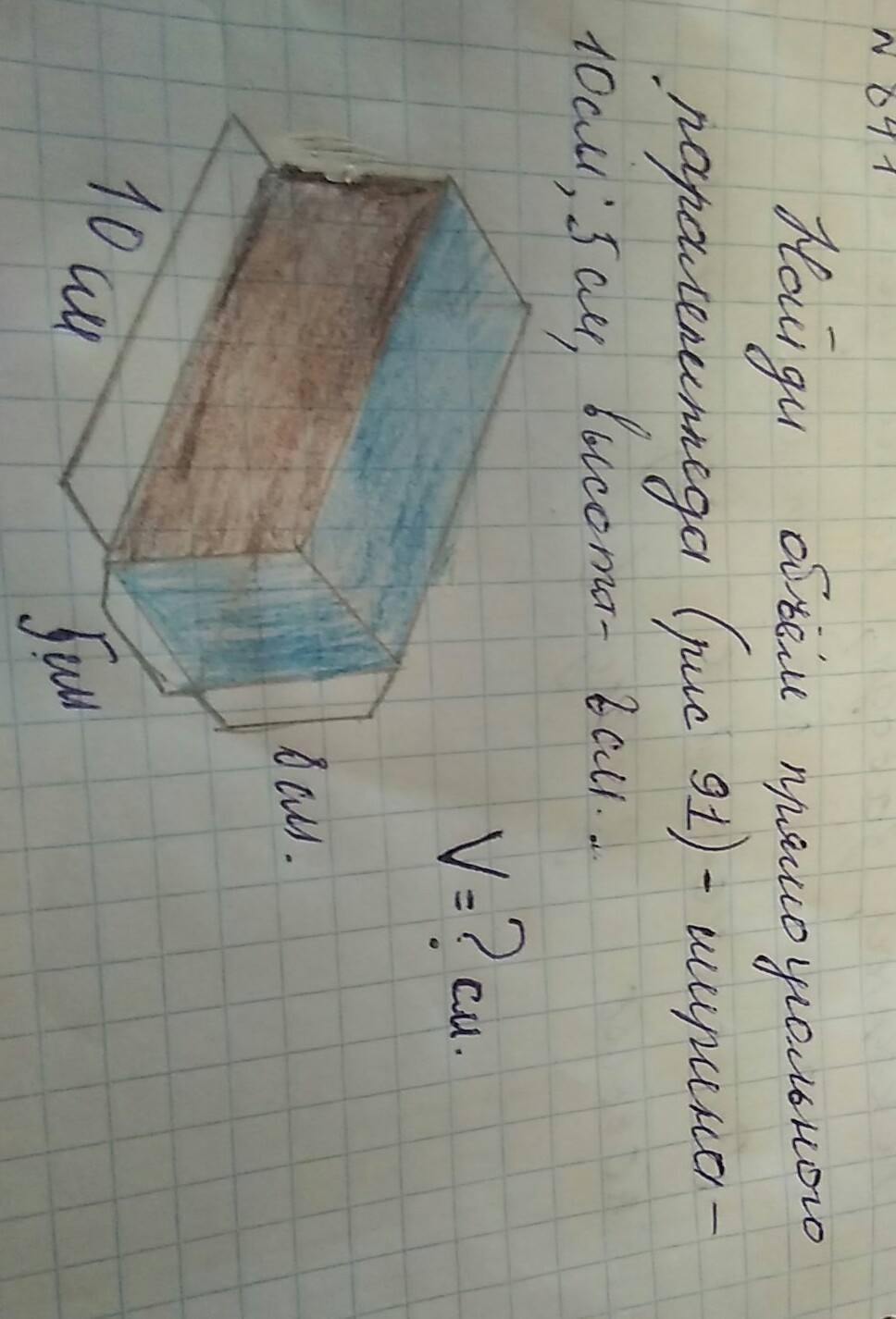 1)10см*5см*8см=400 см3-объём прямоугольного параллелепипеда.