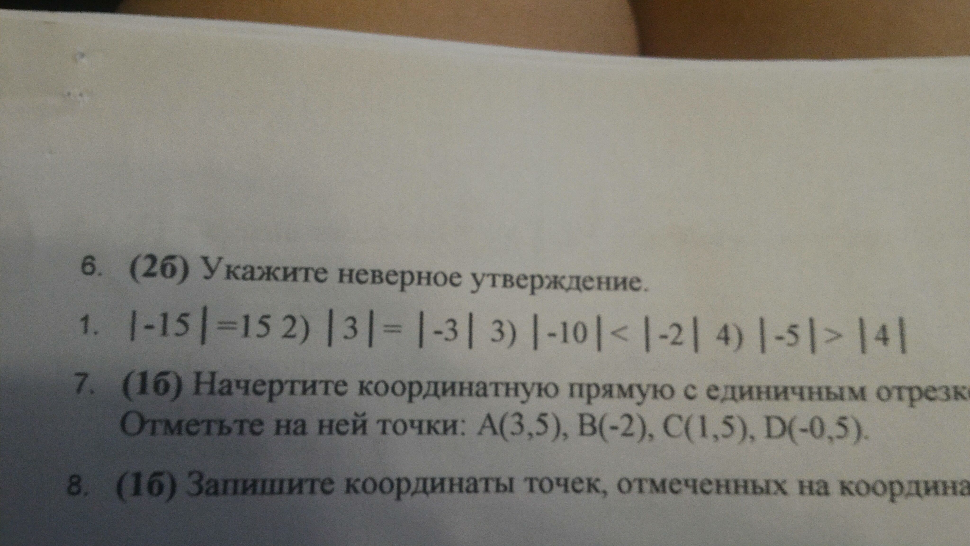 Ответ будет под тройкой. Так как |-10| = 10, а |-2| = 2. Поэтому 10 не будет меньше 2. А так как нужно дать ответ неверного утверждения, то этот вариант подходит.