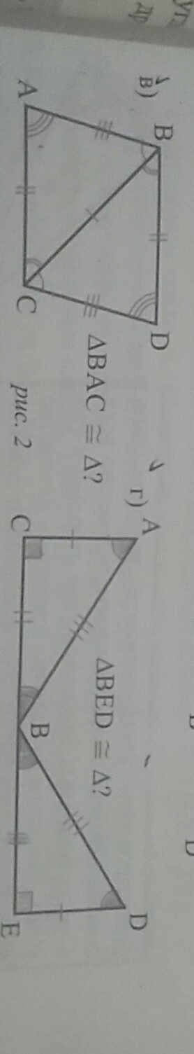В)Δ ВАС конгруэнтен Δ СДВ. Здесь сторона ВА=СД, АС=ДВ, ВС=СВ.