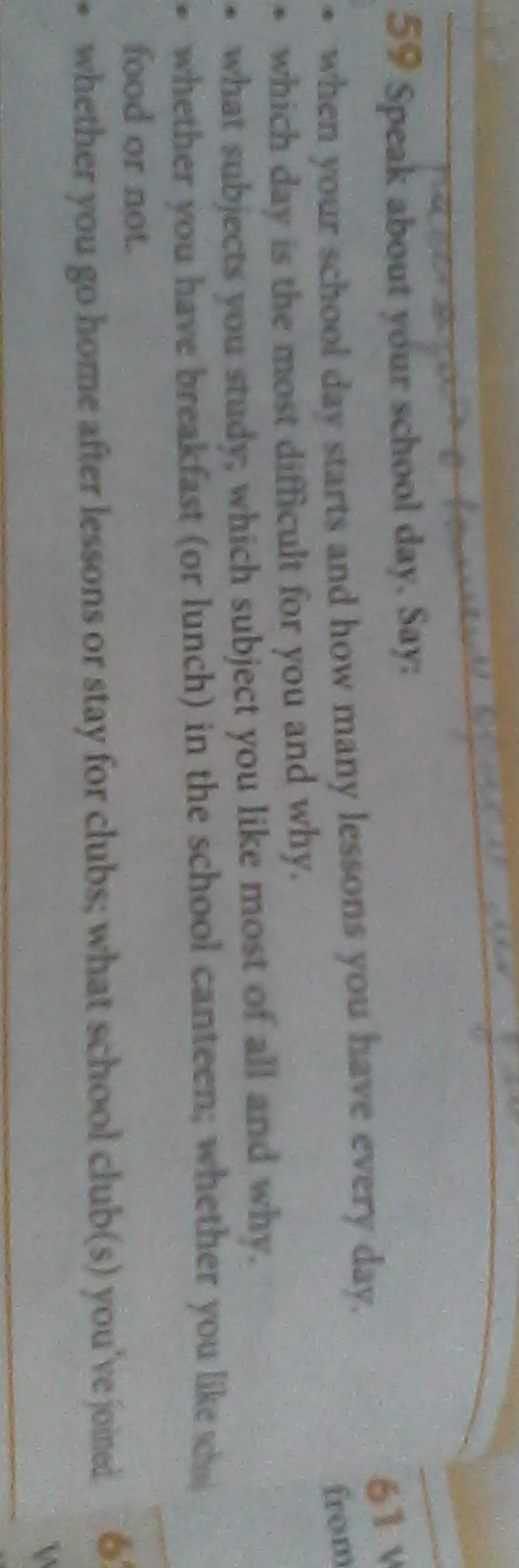I'm very busy because I study in school and every day I have lessons and make homework. I get up at 7 o'clock 2 clean myself