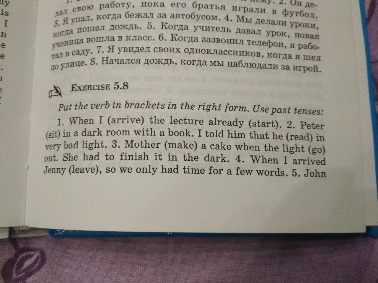 2. Peter sat in s dark room with a book. I told him that he was reading in very bad light.
