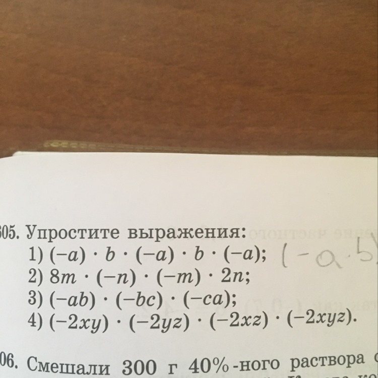 (-3 а)*2b (8 m-m)*(2n-n) (-a)*b*(-b)*c*(-c)*a (-2x)*y*(-2y)*z*(-2x)*z*(-2x)*y*z