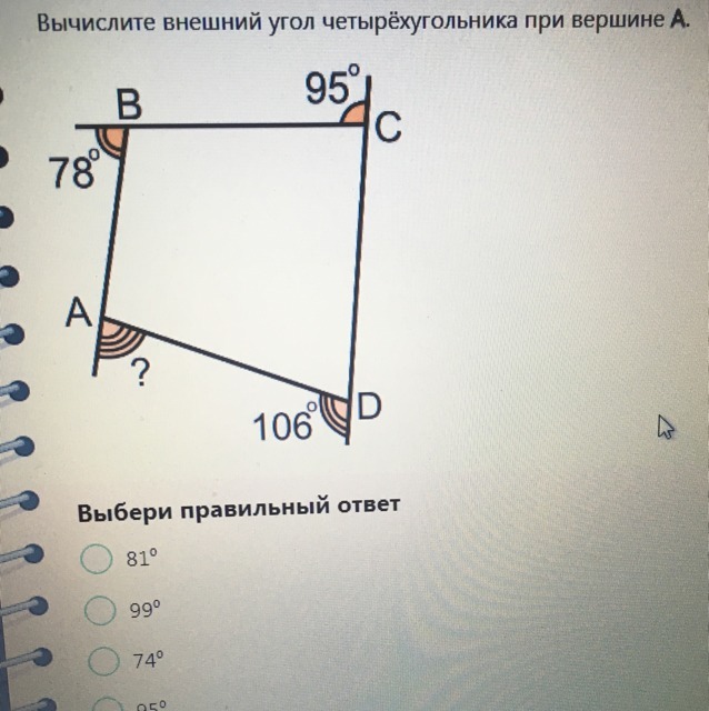 78 т.к. А=углу который равен 78* - как накрест лежащий