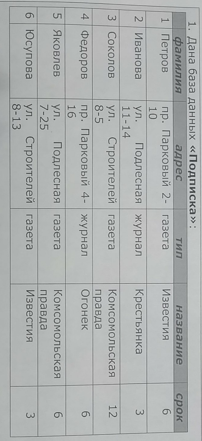 в каком порядке будут выведены записи в БД "Подписка", если они отсортированы по ключам: