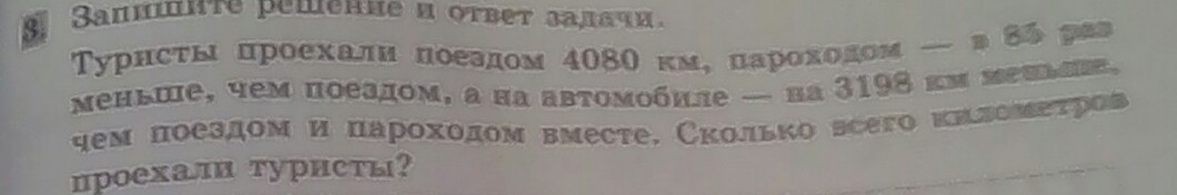 1) 4080: 85= 48(км) - проехали пароходом