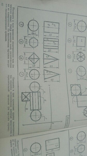 ХЕЛП!!!! Помогите начертить: -Мне нужно начертить по 4 фигуры и 4 аксонометрии.. Очень буду благодарна!