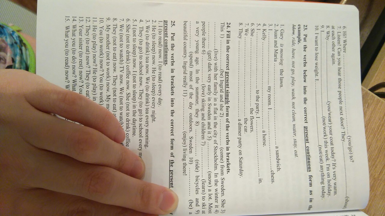 +ing: talking, mending, cooking, sleeping