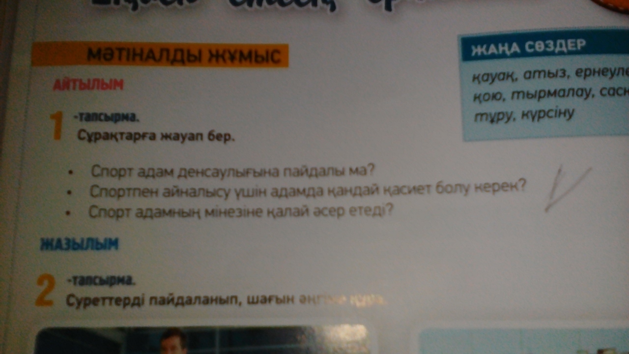 3. спорт адамның мінезіне үлкен əсерін тигізеді. себебі, спорт - денсаулық кепілі. егер спортпен айналыссақ біздің денсаулығымыз мықты болада