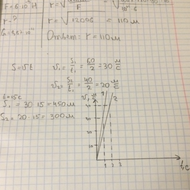 По графику пути равномерного движения определите скорости движения 1 и 2 тела. Определите путь, пройденный каждым телом за 15 с. Постройте графики скорости 1 и 2 тела. 39 баллов.