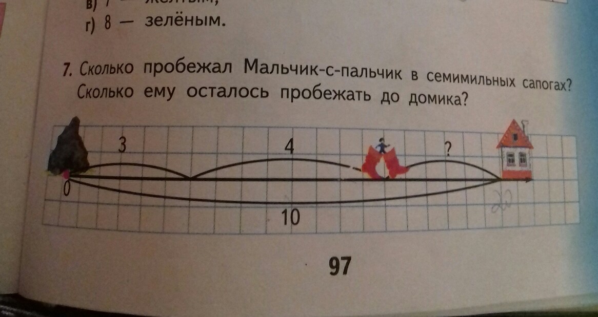 сколько пробежал мальчикспальчик в семимильных сапогах?сколько ему осталось пробежать до домика