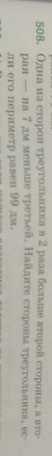 Представим, что вторая сторона х дм, тогда первая сторона 2х дм, а третья сторона (х+7) дм