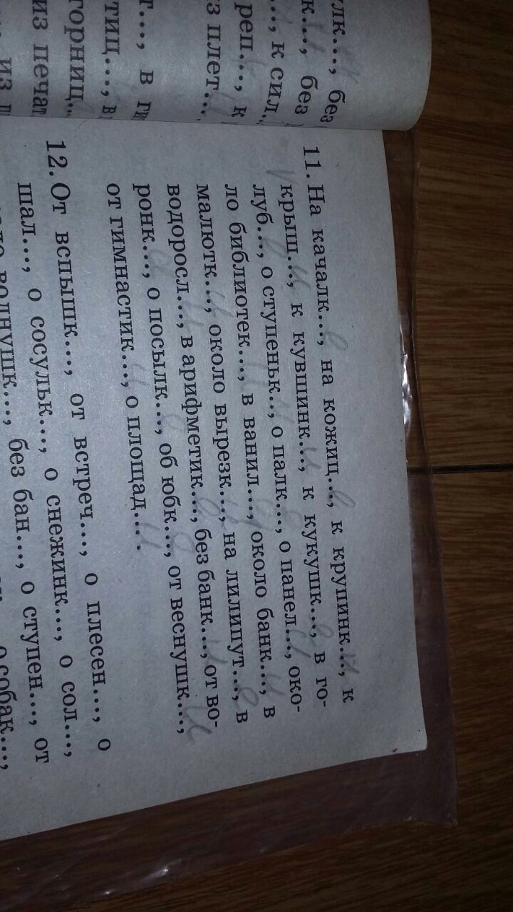 На качалке(предл., 1скл.), на кожице ( то же), к крупинке (дат.. 1 скл.), к крыше ( то же), к кувшинке, к кукушке (дат, 1 скл.), в голубе ( предл., 2 скл.,), о ступеньке, о палке ( предл., 1 скл.), о панели ( предл., 3 скл.), около библиотеки (род., 1 скл.), в ванили( предл., 3 скл.), около банки ( род., 1 скл.), в малютке (предл., 1 скл.), около вырезки (род., 1 скл.), на лилипуте ( предл., 2 скл.), в водоросли (предл., 3 скл.), в арифметике (предл., 1 скл.), без банки (род., 1 скл), от воронки ( род., 1 скл.), о посылке (предл., 1 скл.), об юбке (предл., 1 скл.), от веснушки (род., 1 скл.), от гимнастики ( род., 1 скл.,), о площади ( предл., 3 скл.).