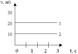 1. Скорость движения первого тела: 20 м/с, скорость движения второго тела=10 м/с. Здесь движение равномерное и прямолинейное.